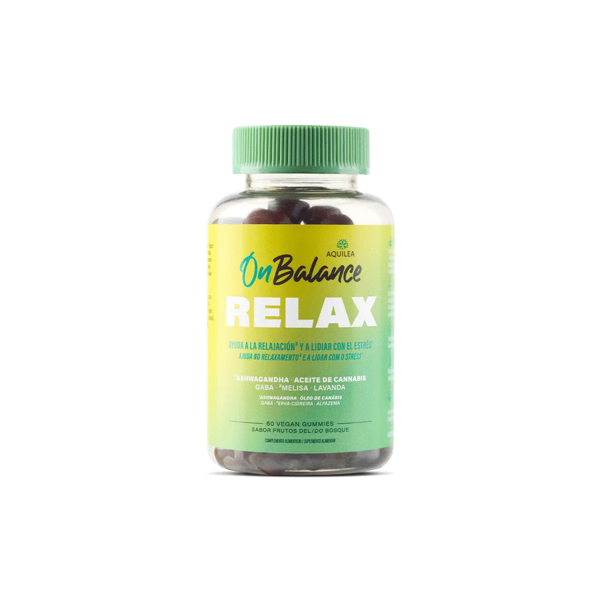 Aquilea On Balance RELAX es un complemento alimenticio de 60 gummies que ayudan a mantener un estado relajado y a lidiar con el estrés en momentos de tensión.